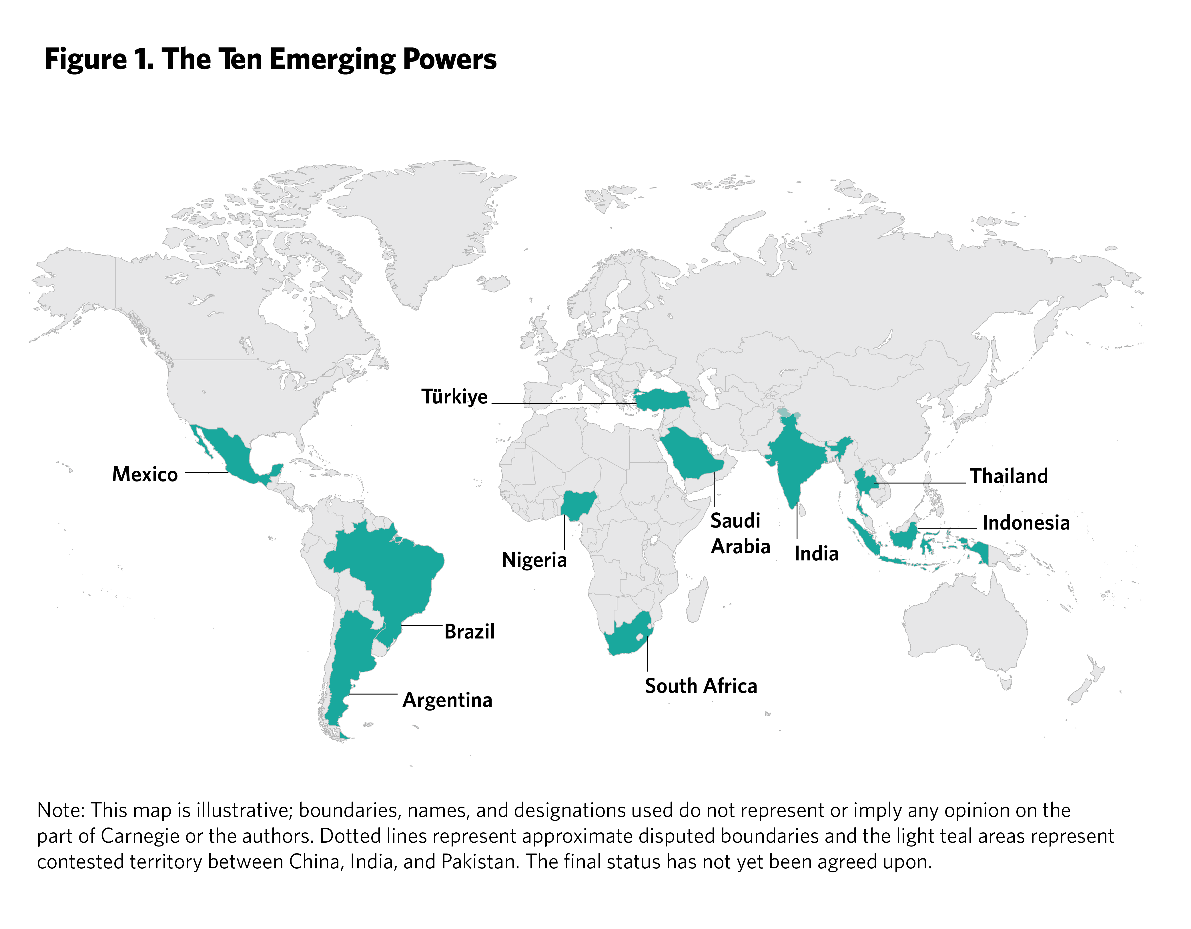 The authors would like to thank Mariano-Florentino (Tino) Cuéllar, Daniel Baer, James M. Acton, Michael Mazarr, Zack Cooper, Matias Spektor, and Christopher Johnstone for their insightful comments on earlier drafts of this report. We would also like to thank the regional experts who reviewed or coauthored the case studies on each emerging power, including Alper Coşkun, Zainab Usman, Oliver Stuenkel, Elina Noor, Aaron David Miller, Ashley J. Tellis, Shannon O’Neil, and Scot Marciel. We are grateful to the diplomats and U.S. government officials with whom we held off-the-record conversations, which greatly improved our understanding of this subject. Lastly, thank you to Carnegie’s Communications team, especially Lindsay Maizland, Alie Brase, Jocelyn Soly, Amanda Branom, and Amy Mellon, for their work on this report.